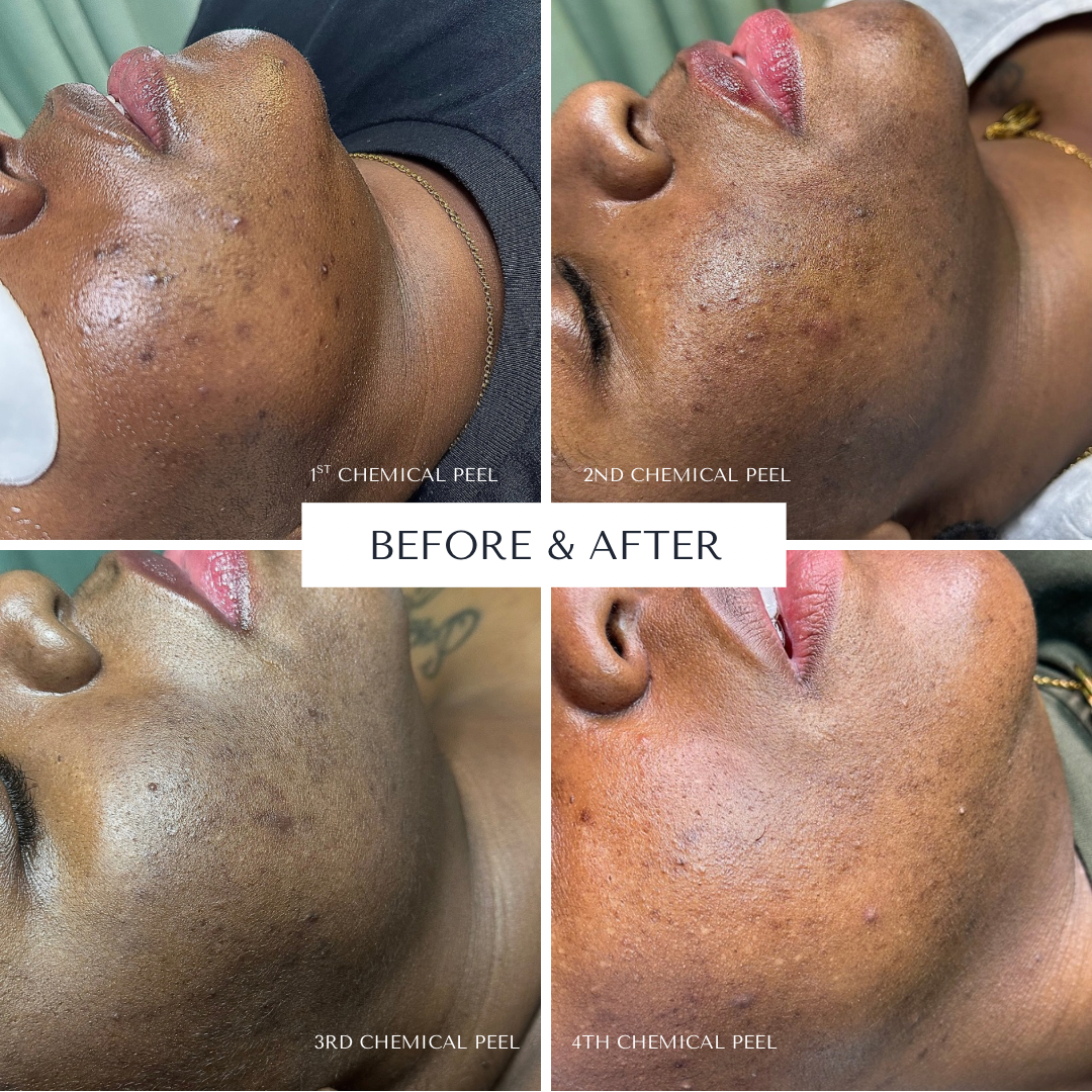 Chemical peels work gradually to lift hyperpigmentation and improve overall skin clarity. A treatment series allows the skin to safely renew and brighten over time.